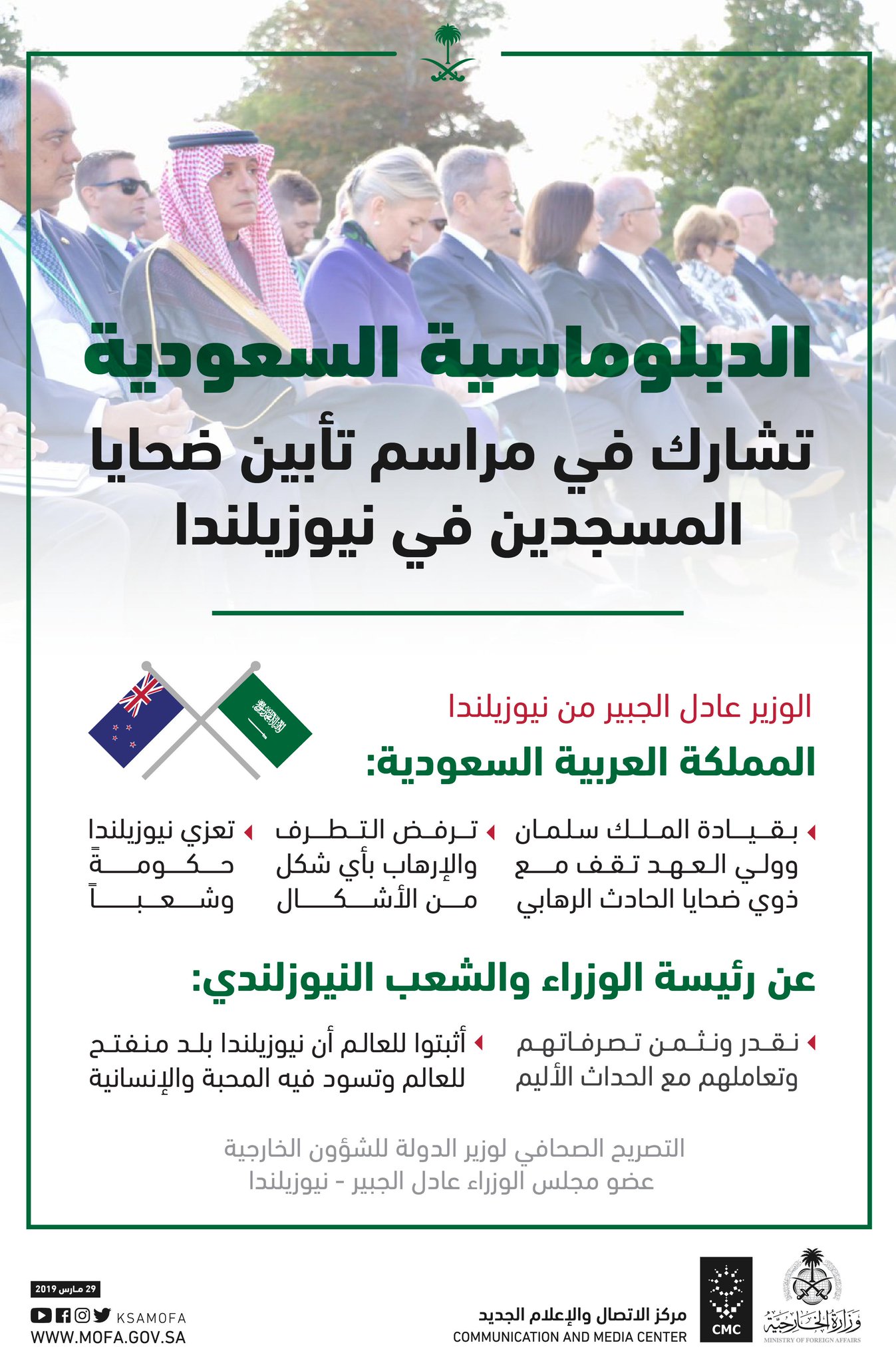 وزارة الخارجية On Twitter انفوجرافيك الخارجية الدبلوماسية السعودية تشارك في مراسم تأبين ضحايا المسجدين في نيوزيلندا
