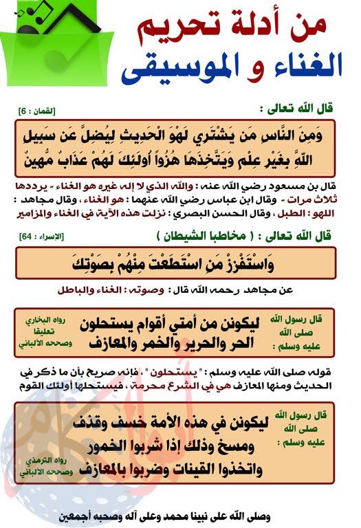 من أدلة تحريم الغناء والموسيقى موقع البطاقة الدعوي