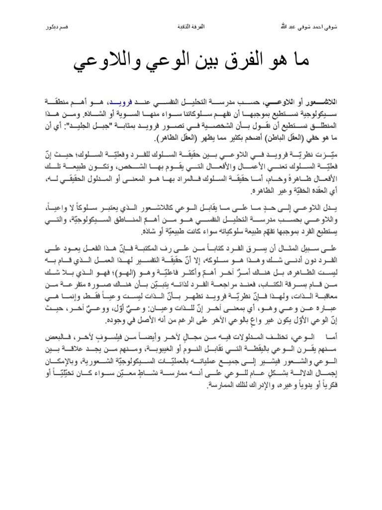 وضعية مشكلة مفهوم الوعي واللاوعي Doc فيلوكلوب فيلوكلوب نادي الفلسفة
