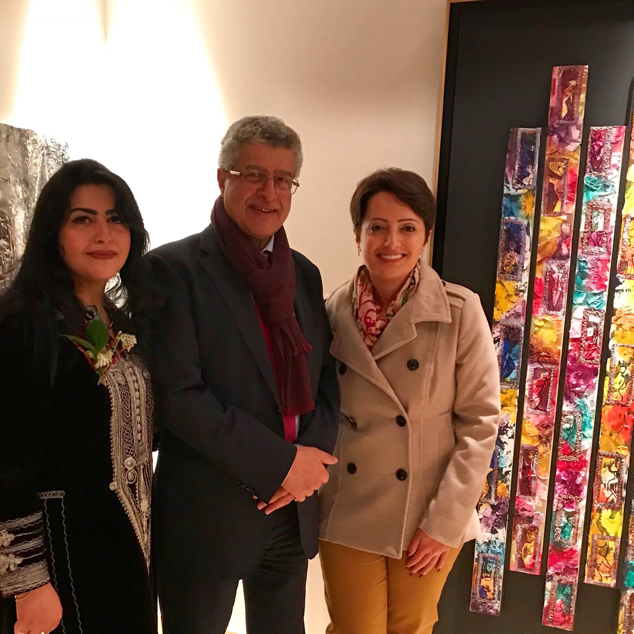 ايمان الحمود No Twitter مع الفنانة التشكيلية السعودية د آمال الزهراني ووالدها مدير معهد العالم العربي في باريس د معجب الزهراني الى جانب احد أعمالها المعروضة في معرض يحاكي الفن النسوي يتزامن