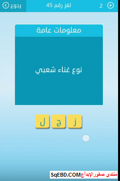 جواب سؤال نوع غناء شعبى من اللغز رقم 45 من لعبة رشفة للمجموعة الخامسة صقور الإبدآع