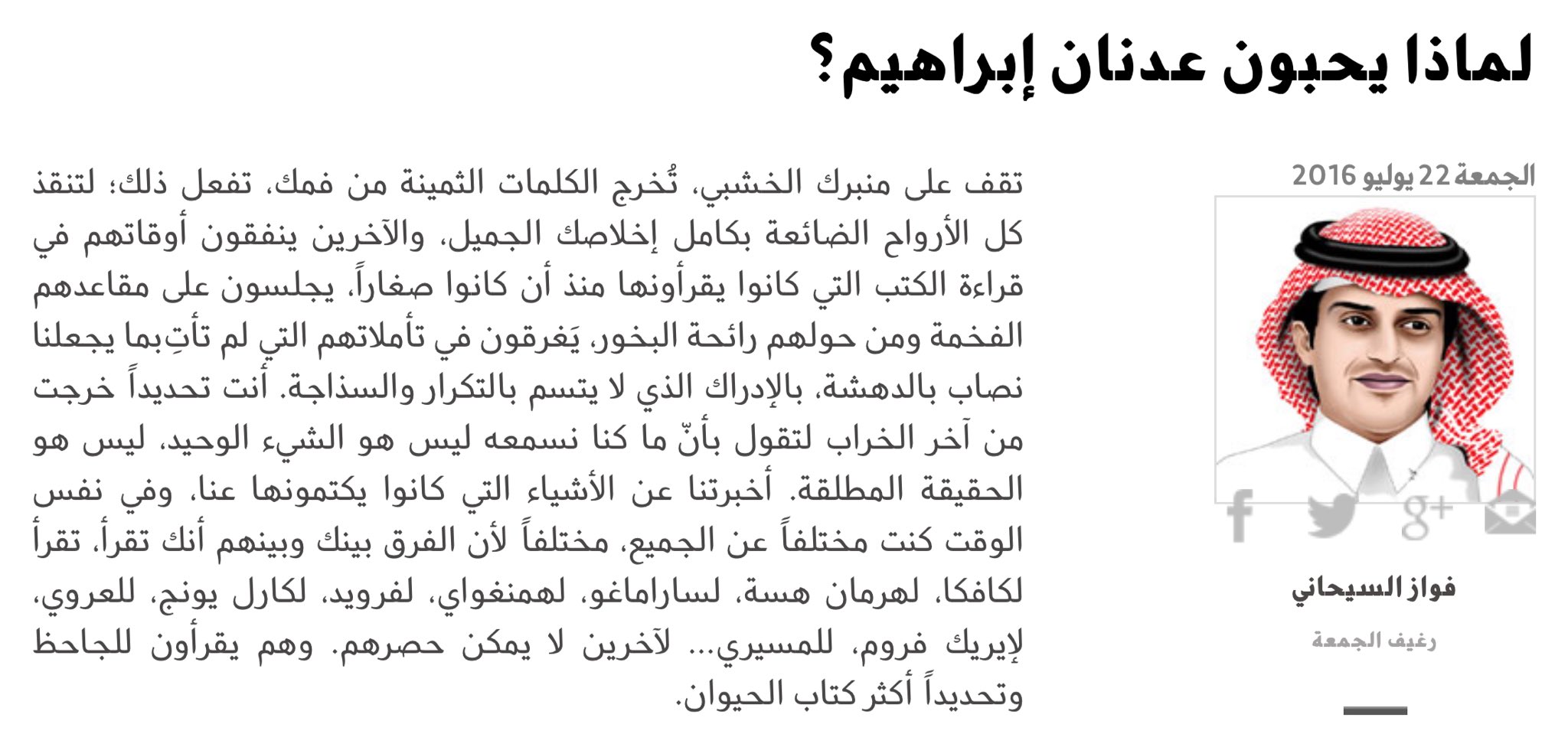 برنامج صحوة Ar Twitter فواز السيحاني يكتب لماذا يحبون عدنان إبراهيم لقراءة المقال كاملا عبر الرابط Https T Co Wrbmweu4cw صحوة