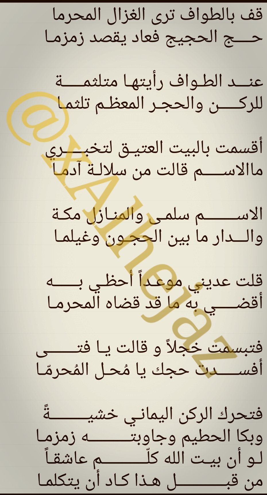Hatim قف بالطواف ترى الغزال المحرما حج الحجيج وعاد يقصد