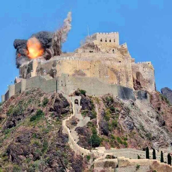 Arcablog Al Qahera Castle Taiz Yemen Before And After Site Was Struck By Air Raids May 21 2015