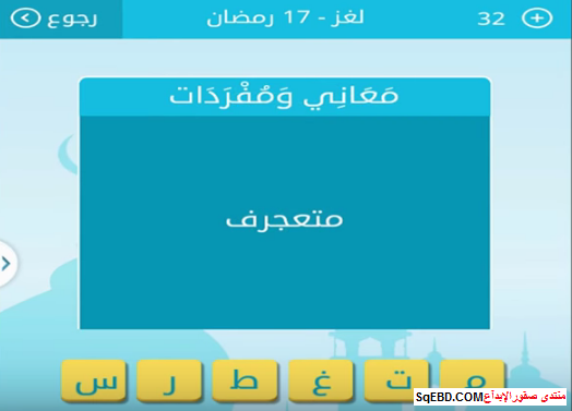 جواب لغز متعجرف من 6 حروف من لغز 17 رمضان من لعبة رشفة رمضانية صقور الإبدآع
