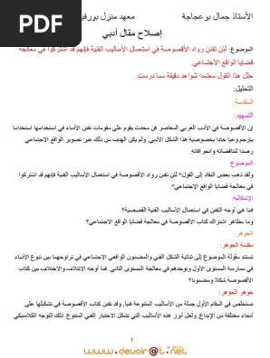إصلاح مقال أدبي الأولى ثانوي الأستاذ جمال بوعجاجة Pdf