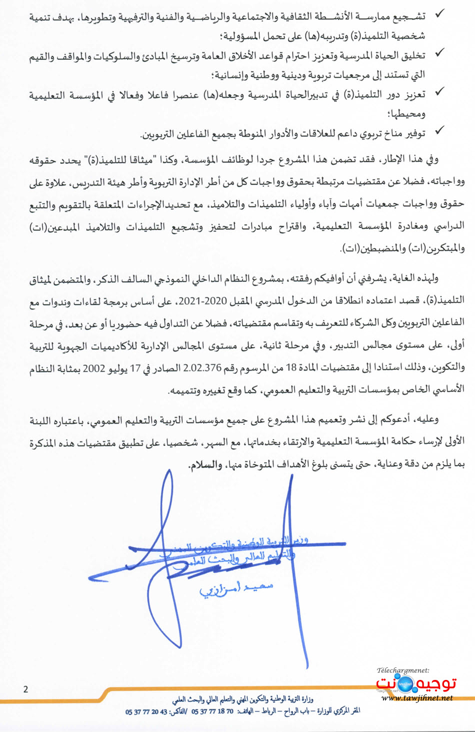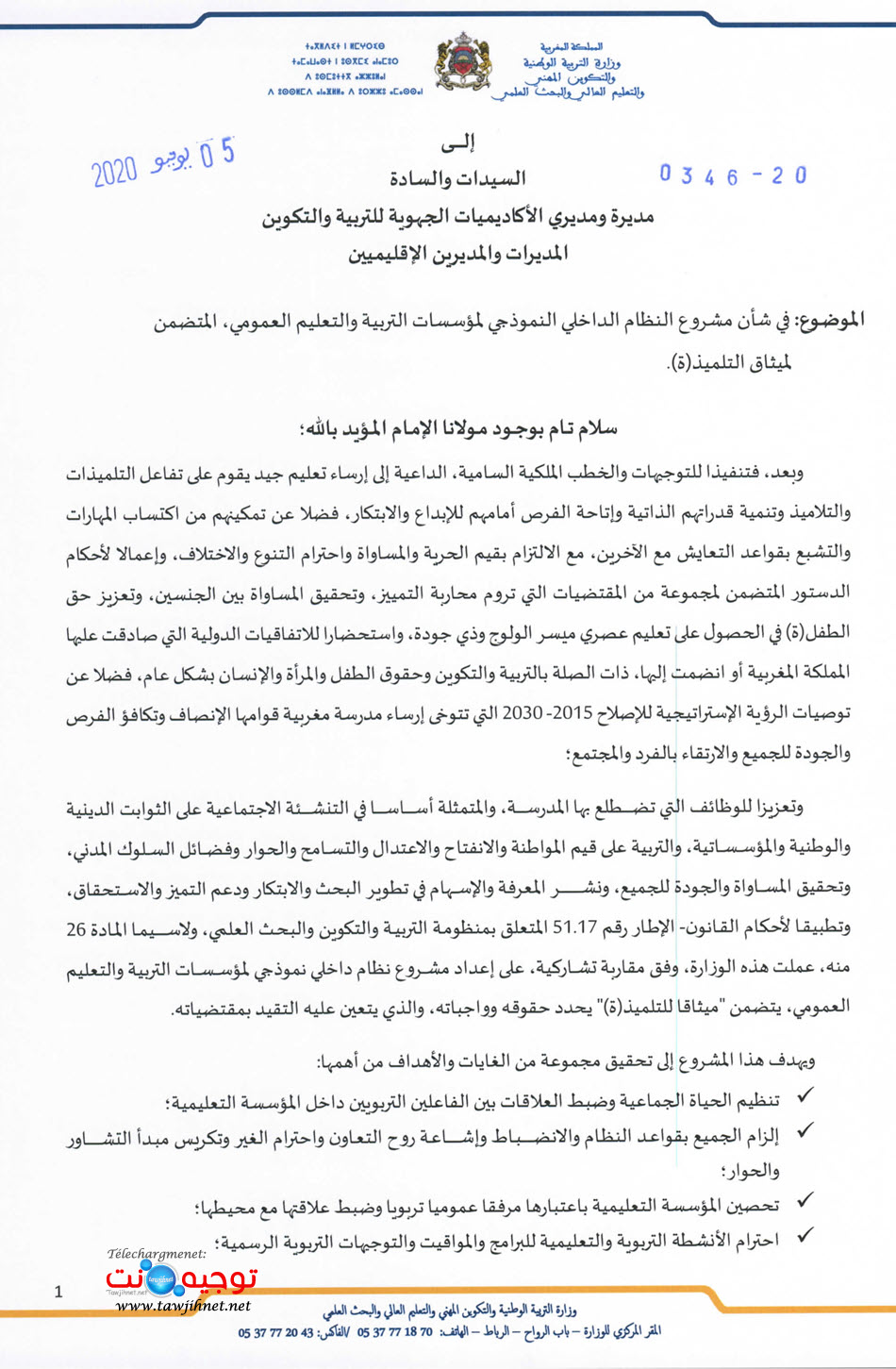 مشروع النظام الداخلي النموذجي لمؤسسات التربية والتعليم ميثاق التلميذ Jadid365 Ma