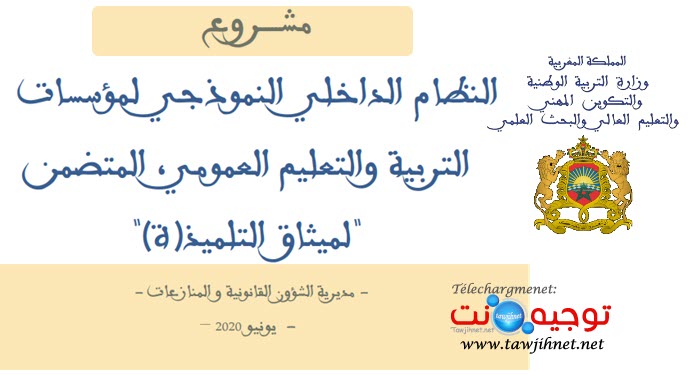نموذج النظام الداخلي للمؤسسات التعليمية العمومية ميثاق التلميذ 2020